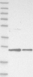A Western blot analysis is performed on a panel of human tissues and cell lines to evaluate antibody specificity. For antibodies with unreliable result a revalidation using an over-expression lysate is performed.