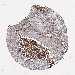 Antibody staining in the annotated cell types in the current human tissue is reported as not detected, low, medium, or high, based on conventional immunohistochemistry profiling in selected tissues. This score is based on the combination of the staining intensity and fraction of stained cells.