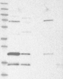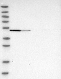 A Western blot analysis is performed on a panel of human tissues and cell lines to evaluate antibody specificity. For antibodies with unreliable result a revalidation using an over-expression lysate is performed.
