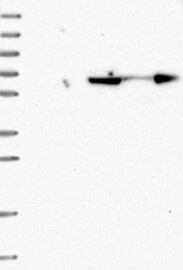 A Western blot analysis is performed on a panel of human tissues and cell lines to evaluate antibody specificity. For antibodies with unreliable result a revalidation using an over-expression lysate is performed.