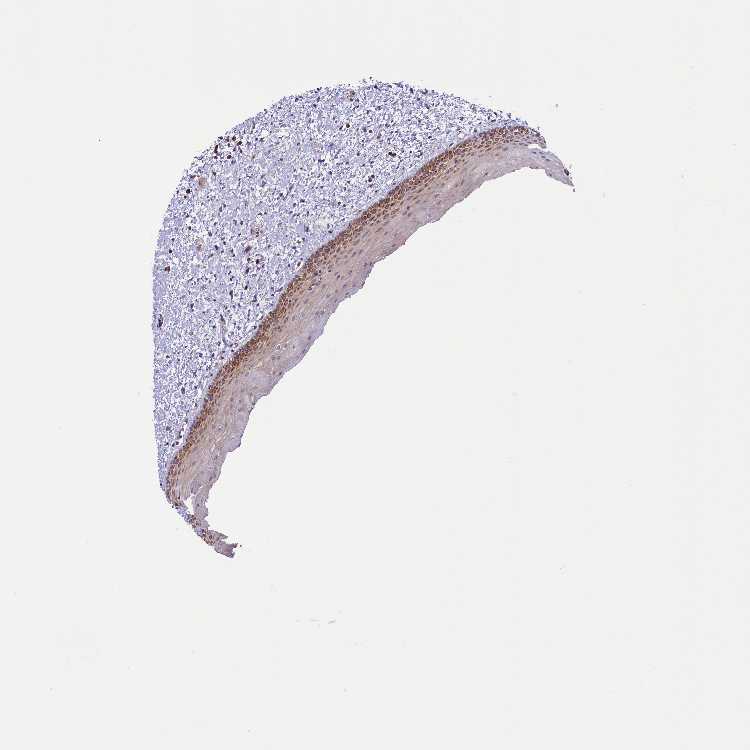 Antibody staining in the annotated cell types in the current human tissue is reported as not detected, low, medium, or high, based on conventional immunohistochemistry profiling in selected tissues. This score is based on the combination of the staining intensity and fraction of stained cells.