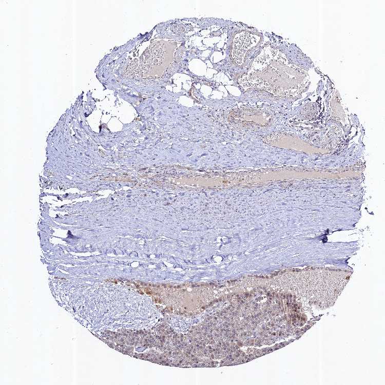 Antibody staining in the annotated cell types in the current human tissue is reported as not detected, low, medium, or high, based on conventional immunohistochemistry profiling in selected tissues. This score is based on the combination of the staining intensity and fraction of stained cells.
