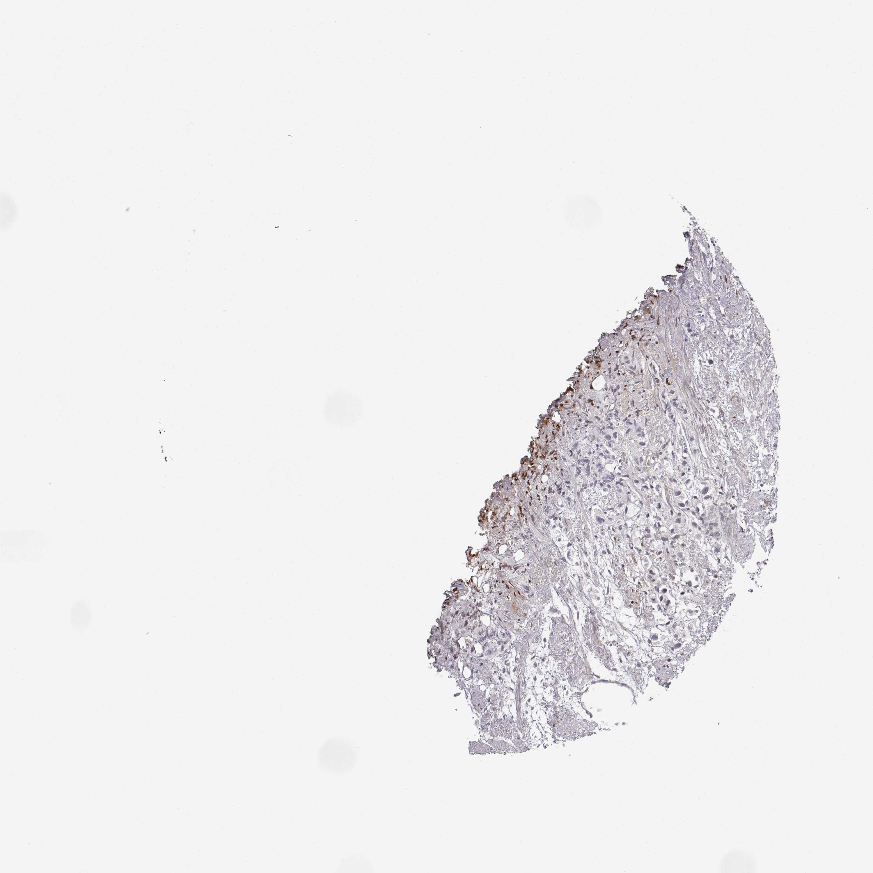 Antibody staining in the annotated cell types in the current human tissue is reported as not detected, low, medium, or high, based on conventional immunohistochemistry profiling in selected tissues. This score is based on the combination of the staining intensity and fraction of stained cells.