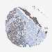 Antibody staining in the annotated cell types in the current human tissue is reported as not detected, low, medium, or high, based on conventional immunohistochemistry profiling in selected tissues. This score is based on the combination of the staining intensity and fraction of stained cells.