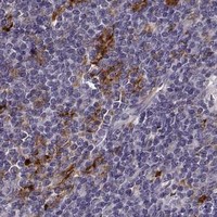 Immunofluorescent staining of human cell line MCF-7 shows localization to nucleoplasm.