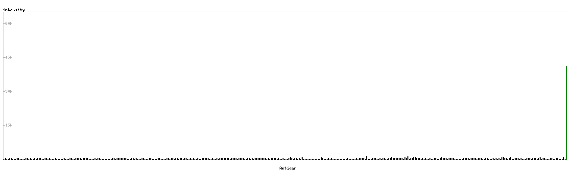 The curve in blue displays the predicted antigenicity i.e. the tendency for different regions of the protein to generate an immune response, with peak regions being predicted to be more antigenic.The curve shows average values based on a sliding window approach using an in-house propensity scale. (read more).