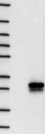 Lane 1: Marker [kDa] 250, 130, 95, 72, 55, 36, 28, 17, 10 Lane 2: Negative control (vector only transfected HEK293T lysate) Lane 3: Over-expression Lysate (Co-expressed with a C-terminal myc-DDK tag (~3.1 kDa) in mammalian HEK293T cells, LY407026) Target mass (kDa): 29.7, 29.2, 27.2