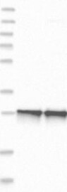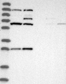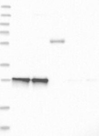 A Western blot analysis is performed on a panel of human tissues and cell lines to evaluate antibody specificity. For antibodies with unreliable result a revalidation using an over-expression lysate is performed.