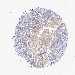 Antibody staining in the annotated cell types in the current human tissue is reported as not detected, low, medium, or high, based on conventional immunohistochemistry profiling in selected tissues. This score is based on the combination of the staining intensity and fraction of stained cells.