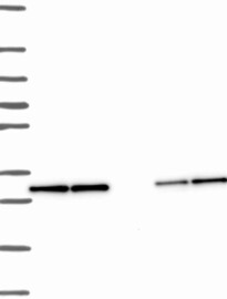 A Western blot analysis is performed on a panel of human tissues and cell lines to evaluate antibody specificity. For antibodies with unreliable result a revalidation using an over-expression lysate is performed.