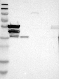 A Western blot analysis is performed on a panel of human tissues and cell lines to evaluate antibody specificity. For antibodies with unreliable result a revalidation using an over-expression lysate is performed.