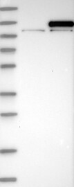 A Western blot analysis is performed on a panel of human tissues and cell lines to evaluate antibody specificity. For antibodies with unreliable result a revalidation using an over-expression lysate is performed.