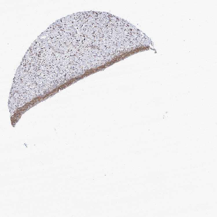 Antibody staining in the annotated cell types in the current human tissue is reported as not detected, low, medium, or high, based on conventional immunohistochemistry profiling in selected tissues. This score is based on the combination of the staining intensity and fraction of stained cells.
