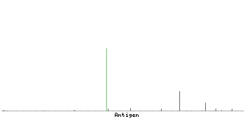 At the top of the view, the position of the antigen (identified by the corresponding HPA identifier) is shown as a green bar. A yellow triangle on the bar indicates a <100% sequence identity to the protein target.