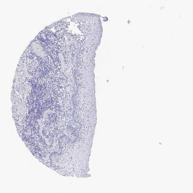 Antibody staining in the annotated cell types in the current human tissue is reported as not detected, low, medium, or high, based on conventional immunohistochemistry profiling in selected tissues. This score is based on the combination of the staining intensity and fraction of stained cells.