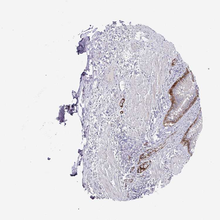 Antibody staining in the annotated cell types in the current human tissue is reported as not detected, low, medium, or high, based on conventional immunohistochemistry profiling in selected tissues. This score is based on the combination of the staining intensity and fraction of stained cells.