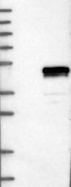 A Western blot analysis is performed on a panel of human tissues and cell lines to evaluate antibody specificity. For antibodies with unreliable result a revalidation using an over-expression lysate is performed.