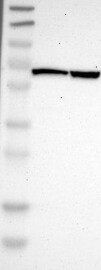 A Western blot analysis is performed on a panel of human tissues and cell lines to evaluate antibody specificity. For antibodies with unreliable result a revalidation using an over-expression lysate is performed.