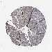 Antibody staining in the annotated cell types in the current human tissue is reported as not detected, low, medium, or high, based on conventional immunohistochemistry profiling in selected tissues. This score is based on the combination of the staining intensity and fraction of stained cells.