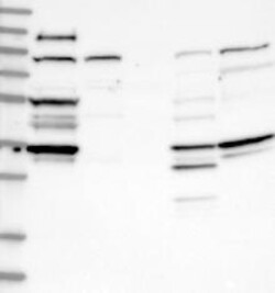 A Western blot analysis is performed on a panel of human tissues and cell lines to evaluate antibody specificity. For antibodies with unreliable result a revalidation using an over-expression lysate is performed.