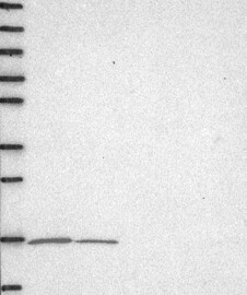 A Western blot analysis is performed on a panel of human tissues and cell lines to evaluate antibody specificity. For antibodies with unreliable result a revalidation using an over-expression lysate is performed.