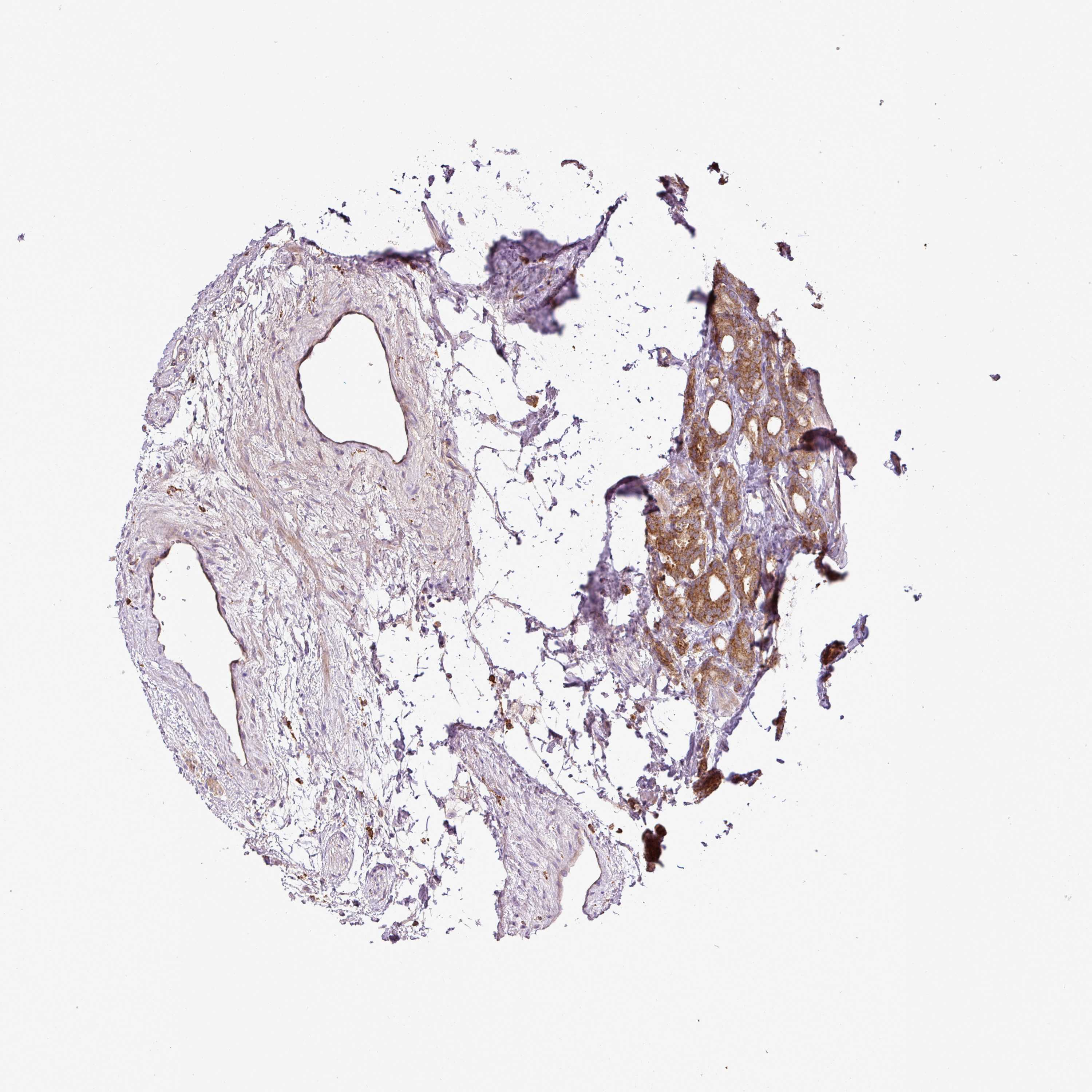 Antibody staining in the annotated cell types in the current human tissue is reported as not detected, low, medium, or high, based on conventional immunohistochemistry profiling in selected tissues. This score is based on the combination of the staining intensity and fraction of stained cells.