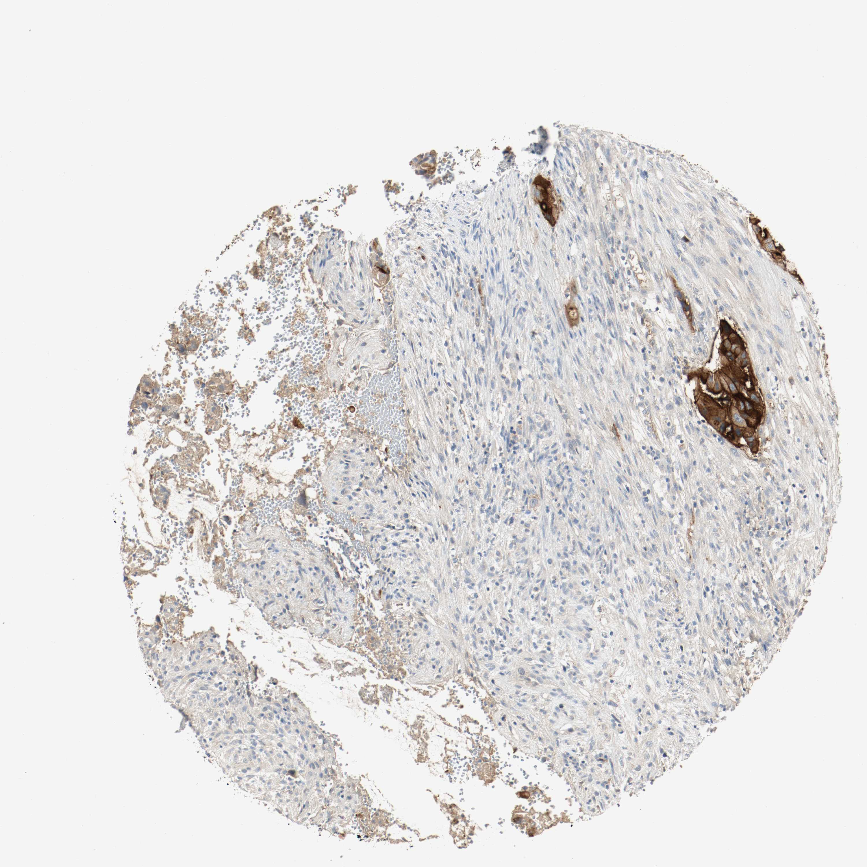 Antibody staining in the annotated cell types in the current human tissue is reported as not detected, low, medium, or high, based on conventional immunohistochemistry profiling in selected tissues. This score is based on the combination of the staining intensity and fraction of stained cells.