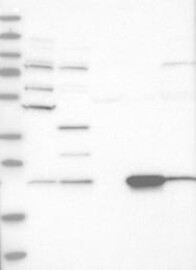 A Western blot analysis is performed on a panel of human tissues and cell lines to evaluate antibody specificity. For antibodies with unreliable result a revalidation using an over-expression lysate is performed.