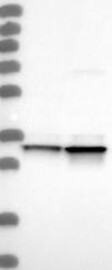 A Western blot analysis is performed on a panel of human tissues and cell lines to evaluate antibody specificity. For antibodies with unreliable result a revalidation using an over-expression lysate is performed.