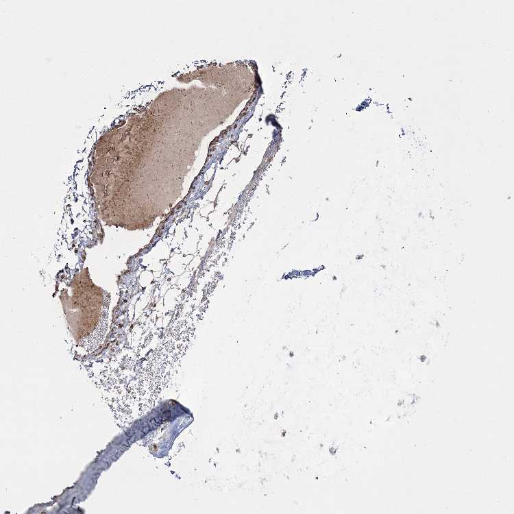 Antibody staining in the annotated cell types in the current human tissue is reported as not detected, low, medium, or high, based on conventional immunohistochemistry profiling in selected tissues. This score is based on the combination of the staining intensity and fraction of stained cells.