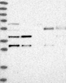 A Western blot analysis is performed on a panel of human tissues and cell lines to evaluate antibody specificity. For antibodies with unreliable result a revalidation using an over-expression lysate is performed.