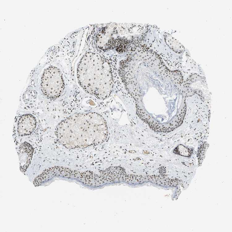 Antibody staining in the annotated cell types in the current human tissue is reported as not detected, low, medium, or high, based on conventional immunohistochemistry profiling in selected tissues. This score is based on the combination of the staining intensity and fraction of stained cells.
