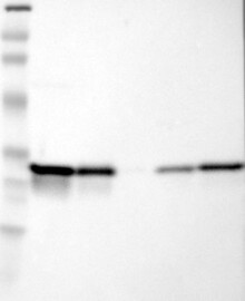 A Western blot analysis is performed on a panel of human tissues and cell lines to evaluate antibody specificity. For antibodies with unreliable result a revalidation using an over-expression lysate is performed.