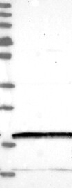 A Western blot analysis is performed on a panel of human tissues and cell lines to evaluate antibody specificity. For antibodies with unreliable result a revalidation using an over-expression lysate is performed.