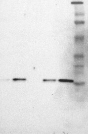 The staining of an antibody is evaluated by Western Blot through analysis of samples from different cell lysates. A supportive score is given if band(s) of predicted size in kDa (+/-20%) is detected.