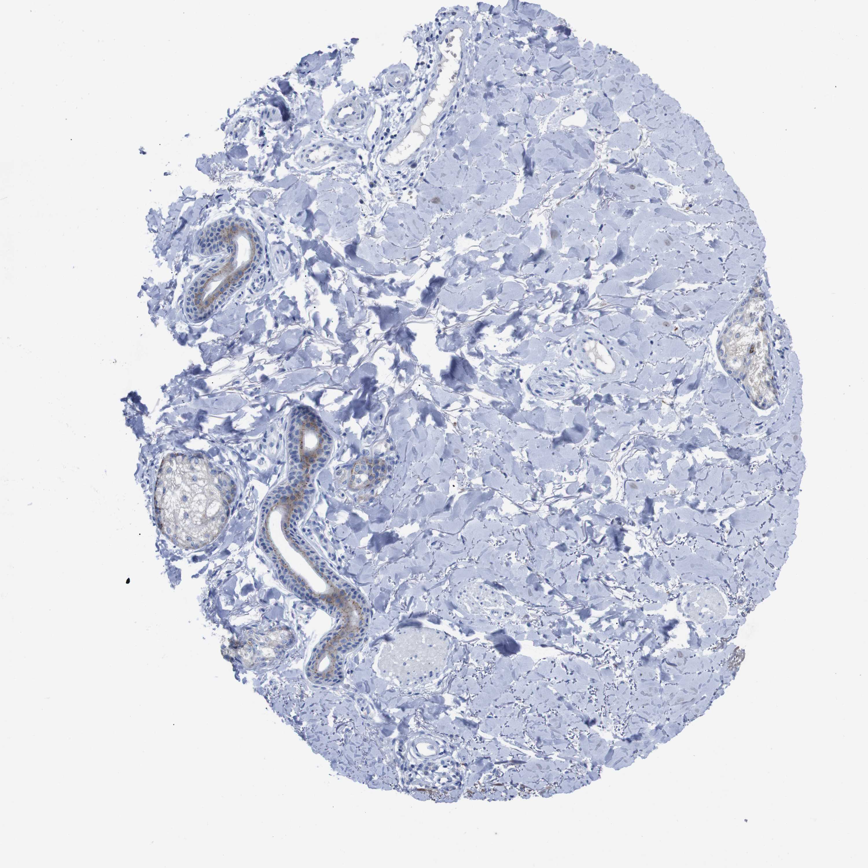 Antibody staining in the annotated cell types in the current human tissue is reported as not detected, low, medium, or high, based on conventional immunohistochemistry profiling in selected tissues. This score is based on the combination of the staining intensity and fraction of stained cells.
