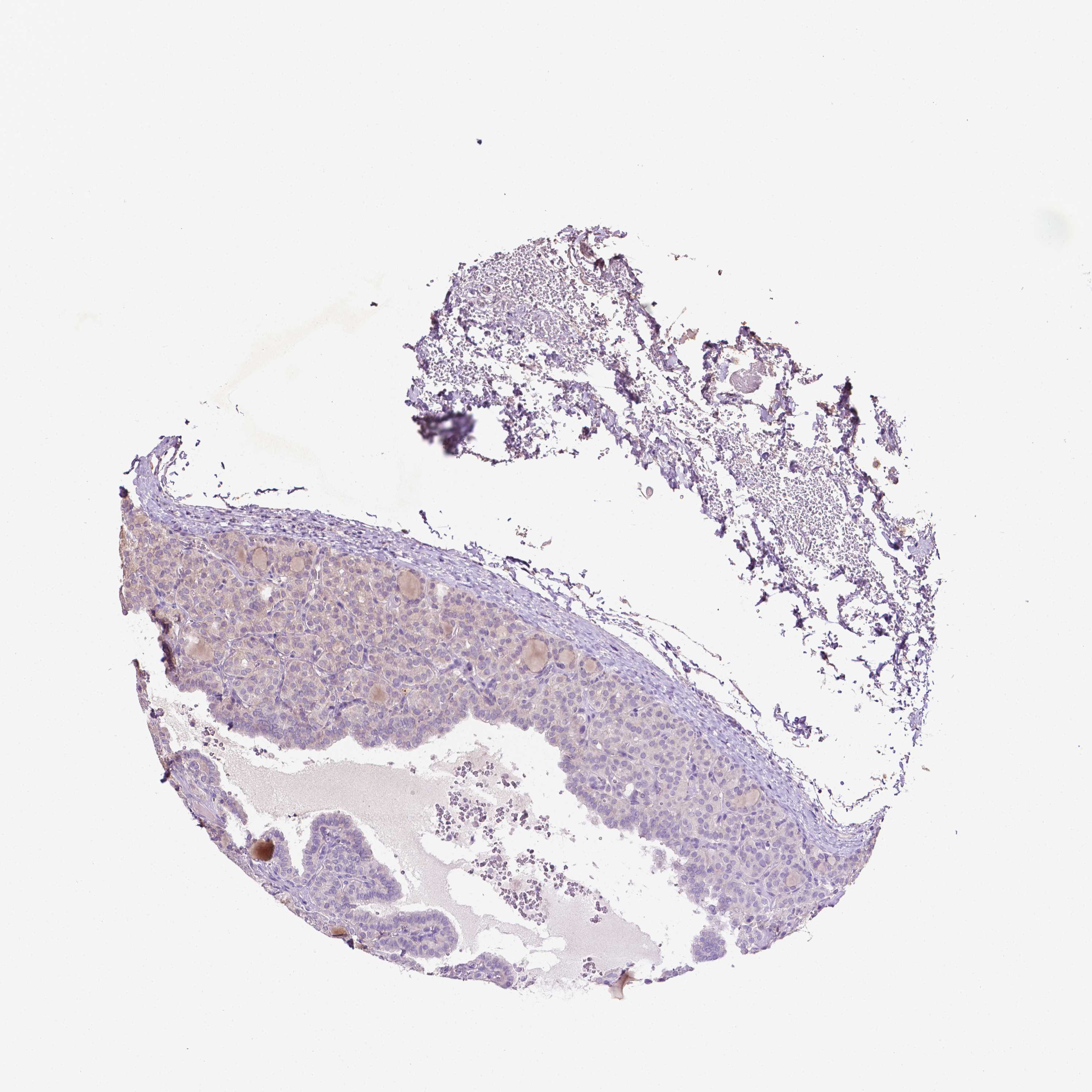 Antibody staining in the annotated cell types in the current human tissue is reported as not detected, low, medium, or high, based on conventional immunohistochemistry profiling in selected tissues. This score is based on the combination of the staining intensity and fraction of stained cells.