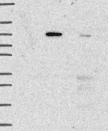 A Western blot analysis is performed on a panel of human tissues and cell lines to evaluate antibody specificity. For antibodies with unreliable result a revalidation using an over-expression lysate is performed.