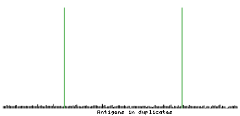 At the top of the view, the position of the antigen (identified by the corresponding HPA identifier) is shown as a green bar. A yellow triangle on the bar indicates a <100% sequence identity to the protein target.