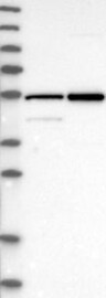 A Western blot analysis is performed on a panel of human tissues and cell lines to evaluate antibody specificity. For antibodies with unreliable result a revalidation using an over-expression lysate is performed.