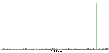 At the top of the view, the position of the antigen (identified by the corresponding HPA identifier) is shown as a green bar. A yellow triangle on the bar indicates a <100% sequence identity to the protein target.