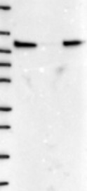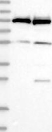 Antibody band pattern is confirmed by antibody HPA036593. Analysis performed using a standard panel of samples.