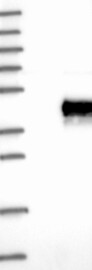 A Western blot analysis is performed on a panel of human tissues and cell lines to evaluate antibody specificity. For antibodies with unreliable result a revalidation using an over-expression lysate is performed.