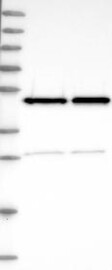A Western blot analysis is performed on a panel of human tissues and cell lines to evaluate antibody specificity. For antibodies with unreliable result a revalidation using an over-expression lysate is performed.