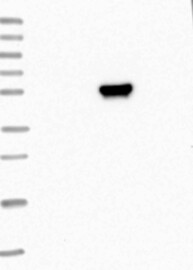 A Western blot analysis is performed on a panel of human tissues and cell lines to evaluate antibody specificity. For antibodies with unreliable result a revalidation using an over-expression lysate is performed.