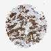 Antibody staining in the annotated cell types in the current human tissue is reported as not detected, low, medium, or high, based on conventional immunohistochemistry profiling in selected tissues. This score is based on the combination of the staining intensity and fraction of stained cells.