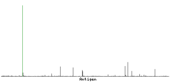 The curve in blue displays the predicted antigenicity i.e. the tendency for different regions of the protein to generate an immune response, with peak regions being predicted to be more antigenic.The curve shows average values based on a sliding window approach using an in-house propensity scale. (read more).