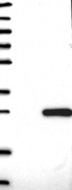 A Western blot analysis is performed on a panel of human tissues and cell lines to evaluate antibody specificity. For antibodies with unreliable result a revalidation using an over-expression lysate is performed.