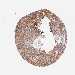 Antibody staining in the annotated cell types in the current human tissue is reported as not detected, low, medium, or high, based on conventional immunohistochemistry profiling in selected tissues. This score is based on the combination of the staining intensity and fraction of stained cells.