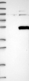 A Western blot analysis is performed on a panel of human tissues and cell lines to evaluate antibody specificity. For antibodies with unreliable result a revalidation using an over-expression lysate is performed.